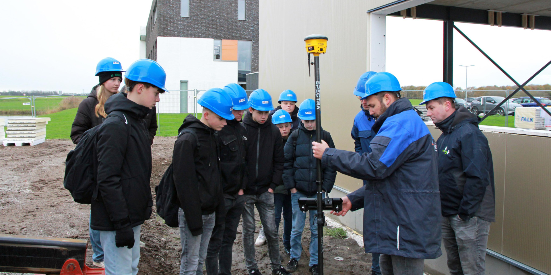 Eén van de ondernemingen - Visser Bouwbedrijf - ontving de scholieren op een nieuwbouwlocatie aan de rand van Dokkum. Om de leerlingen een rondleiding te geven bij een klus in uitvoering was een weloverwogen keuze. ,,Het is leuk voor de jeugd om hier ook eens te komen kijken. Zo kunnen ze zien hoe een project daadwerkelijk wordt gerealiseerd in plaats van het vanaf een tekening te bekijken.”