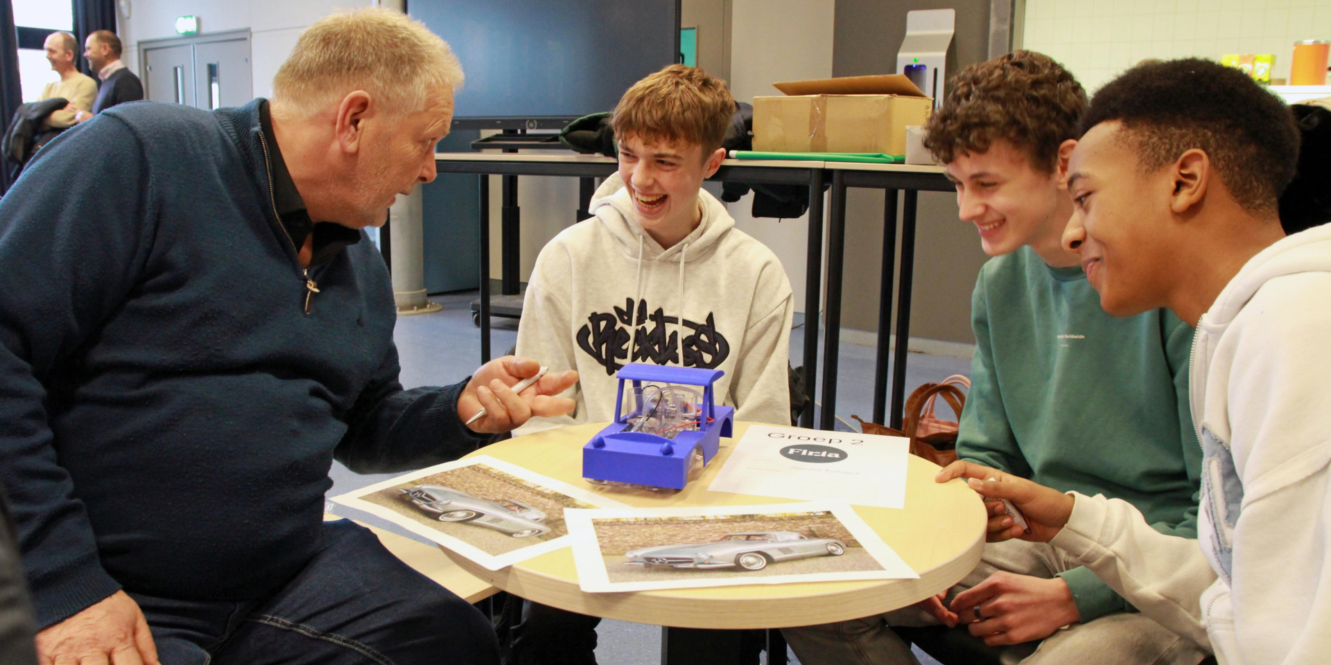 Bij de eindpresentaties van de T&T-challenge in Dokkum was ook een aantal ouders/verzorgers van de partij. Een vader toonde zich zeer onder de indruk van de waterstofauto’s die er rondreden (opdracht van Firda). ,,Dat ze met een heel klein stukje technologie en een heel klein beetje water tóch - ook al is het een klein formaat - een auto in beweging krijgen, is heel bijzonder. Dit hadden wij vroeger niet; daar kon je alleen maar van dromen.”